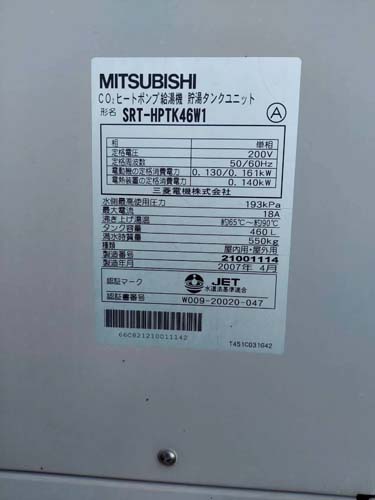 松戸市根本 三菱電機CO2ヒートポンプ給湯機 貯湯タンクユニット SRT-HPTK46W1→コロナ自然冷媒CO2家庭用ヒートポンプ給湯機 ヒートポンプユニットCHP-DZ601K、貯湯ユニットCTU-46AZ1K エコキュート交換工事